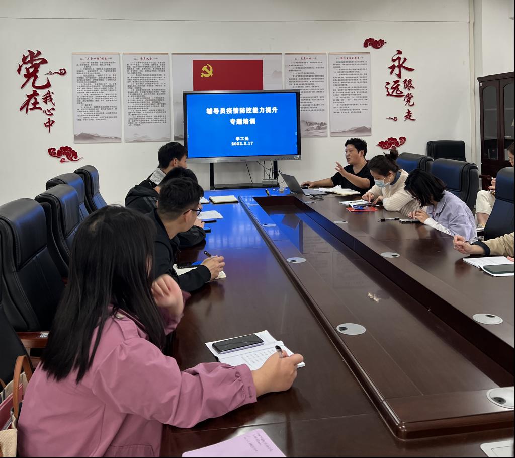 机关第六党支部各部门认真领会上级关于疫情防控工作的相关文件和通知精神,组织学工一线人员进行了3场疫情防控能力提升专题培训,组织全校班级召开疫情防控教育主题班会,将疫情防控的形势和要求传达到每一位学生,提高学生政治意识,加强防范意识,落实落细每项疫情防范工作,切实做到精准定位,高效传达,及时处理,快速上报的工作链条。